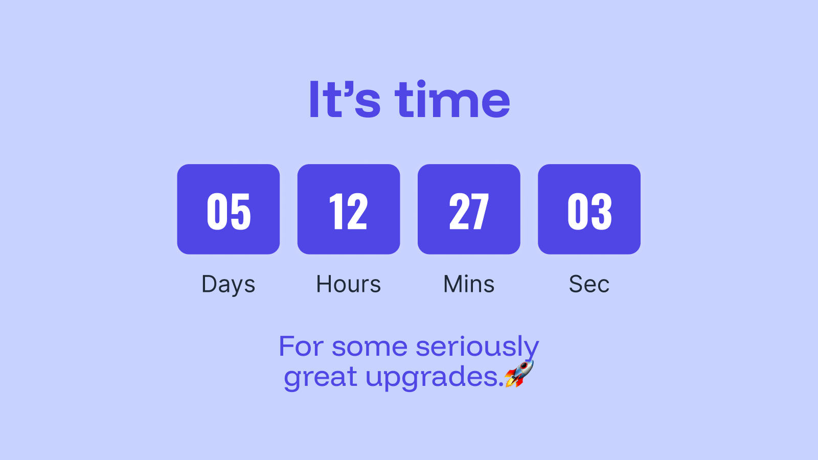 Add urgency, drive action, and energize your promotions with a built-in countdown.